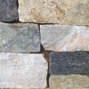 A colorful granite Ledgestone with a great assortment of colors (grey, tan, gold and amber). Naturally weathered and split edge flat stacking stones provide a rustic, yet refined look. Available in sawn flats and sawn corners.