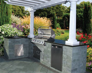 Complete with all the components needed for construction, Cambridge Outdoor Kitchen Kits are available in many different block and finishing styles. Some custom options are also available. The Cambridge Kitchen Kits come standard with a high quality Stainless Steel appliances made in the USA. Two different granite countertop colors are available. There are kitchen kits that require no cutting at all, as well as fully assembled units.