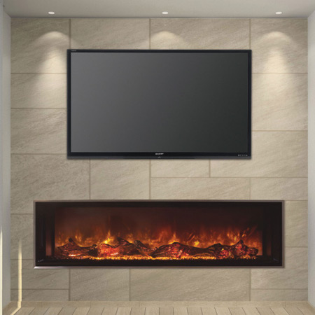 Want to make a statement? How about a 120 inch Electric Fireplace? Maybe a see-thru fireplace that doesn’t require venting or special framing? Electric Fireplace have burst onto the scene with multiple options for your home. Unique styling paired with new technology an Electric Fireplace not only looks good, but can provide some safe heat to a room. No special framing requirements, means you can put an Electric Fireplace almost anywhere! Build it into a wall, hang it on a wall and finish around it with any material, the options are endless.