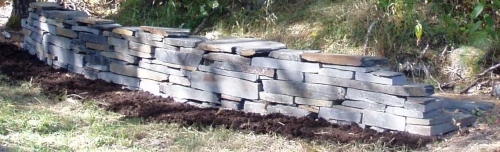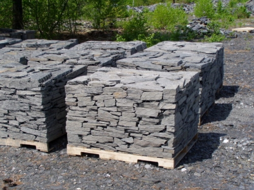 Very flat stone with at least one good cleft or sawn edge per piece. Produced from one of the oldest Slate Quarries in the State of Maine this slate is high quality. Dark grey to black in color and is great for stacking stone for use in retaining walls, decorative gardens and landscape borders. (Also available in 3-5″ Wallstone)