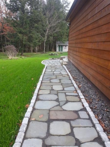 Tumbled Bluestone Garden Path – Rustic, Tumbled Bluestone is Grey/Blue in color and great for stepping stones, walkways or patios! Sold in full pallets or by piece this product has soft edges and a smooth surface.